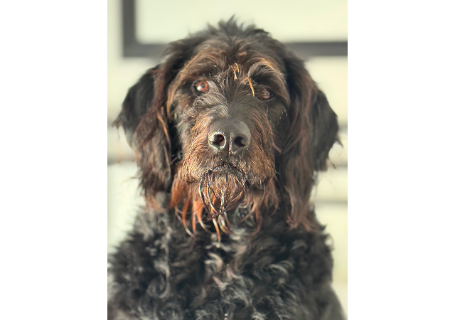 The scrappy Labradoodle who keeps joy on speed dial. Her goofy charm and boundless energy turn even the smallest errands into adventures.